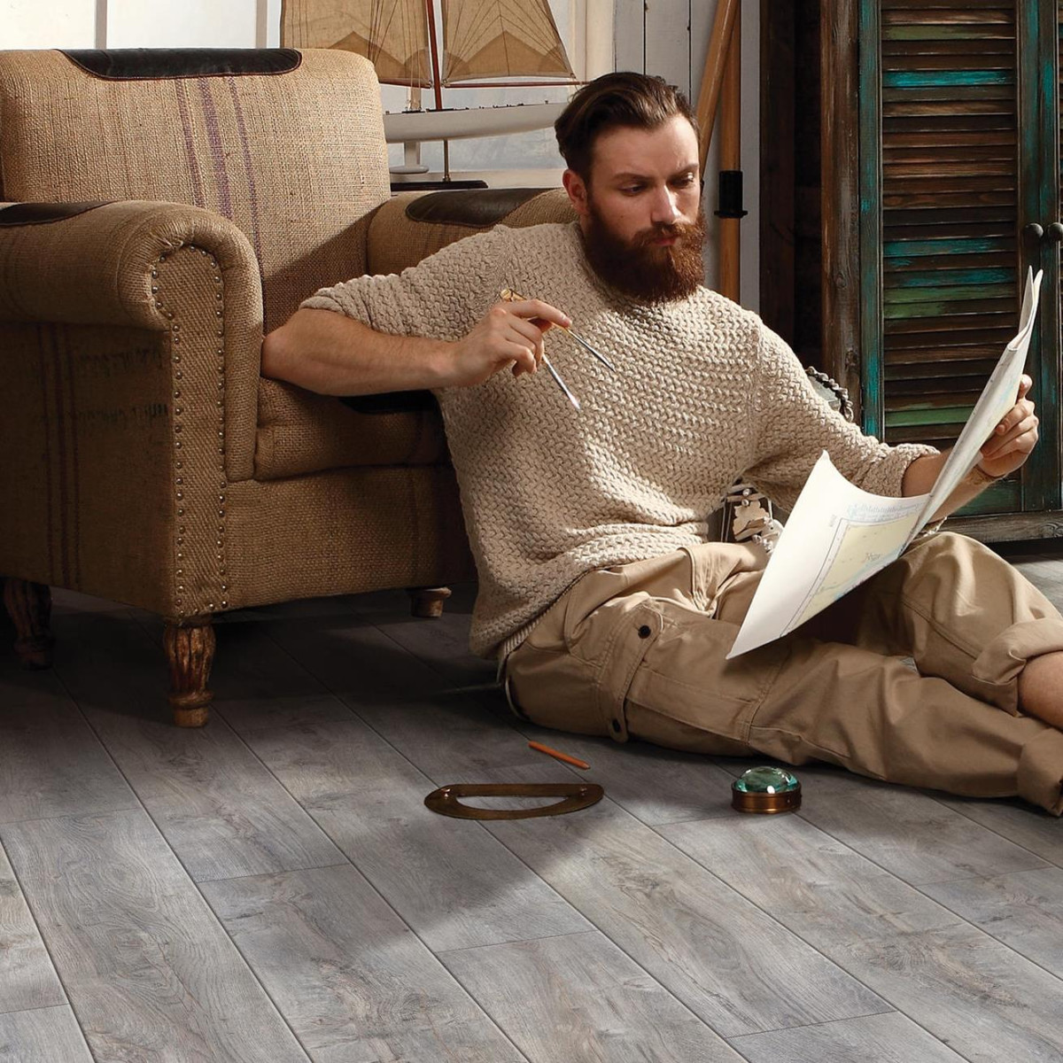 Navigator 1233 — коллекция наиболее актуальных напольных покрытий от компании Tarkett. Создавая этот ламинат, дизайнеры вдохновлялись великими путешественниками-мореплавателями и сделанными ими географическими открытиями. Отсюда и названия: Марко Поло, Магеллан и др. Покрытия примечательны ярко выраженной фактурой натуральной древесины, четким и красивым рисунком. Ламинат соответствует 33 классу применения: устойчив к износу, не теряет своего внешнего вида на протяжении десятилетий. Замковая система TC-Lock позволяет укладывать пол быстро и без использования специальных инструментов. Для защиты пола от влаги применяется технология Tеch3S.